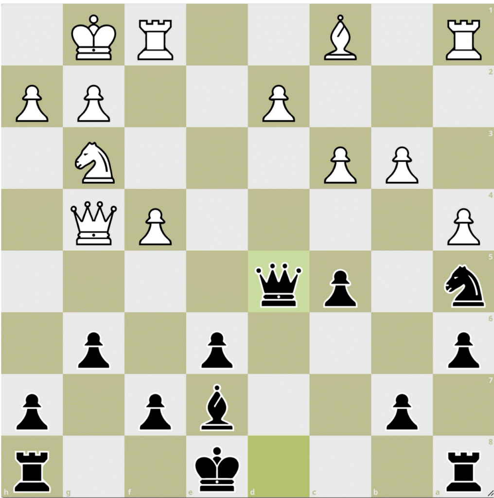 In deze stelling speelde hij , in zijn eigen woorden, de ‘grafzet’ Da5?? Vervolgens werd hij met prachtige loperzetten Ld2 en Le2, inderdaad Pb5 in een complete slachting gemanoeuvreerd. Terwijl ipv Da5 Pc6 een gelijke stelling had opgeleverd. 2-3