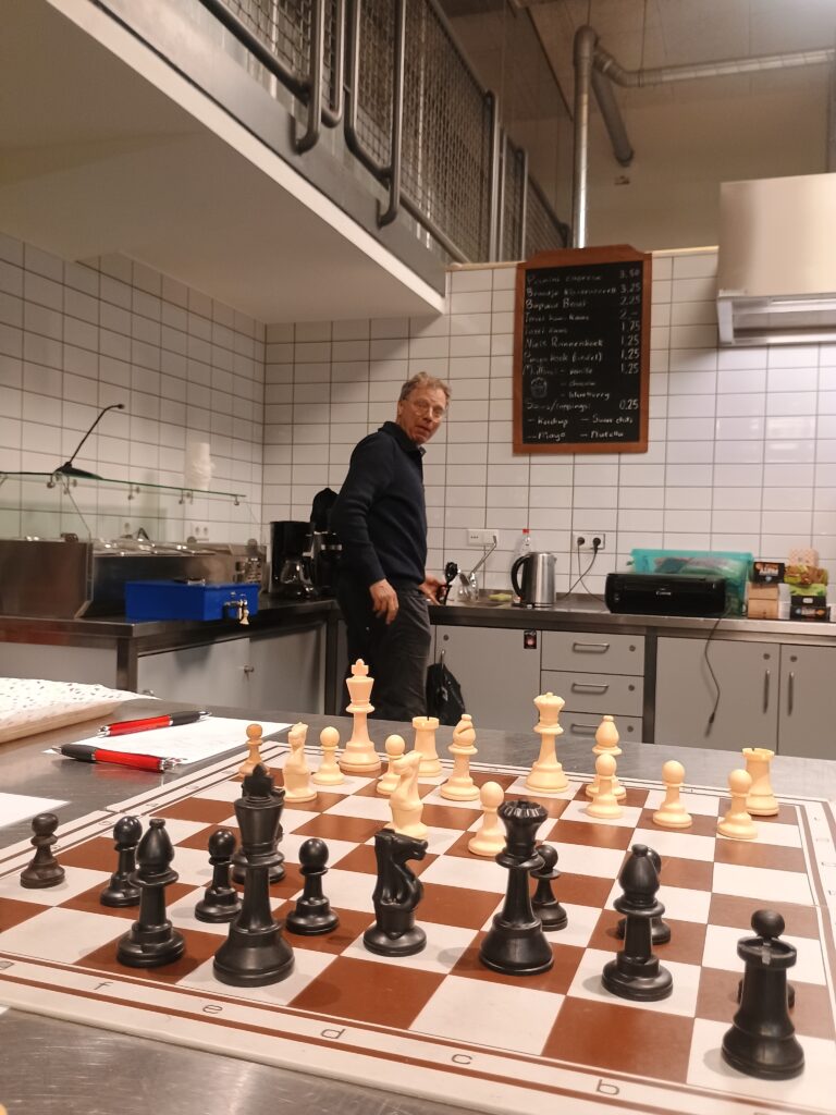 Imre ruilde de stukken en koos voor eeuwig schaak. Wat tegen VAS 1 speler Take natuurlijk nog steeds een goed resultaat is. Terwijl al dit schaakgeweld gaande was werd er ook nog extern gespeeld op de eerste verdieping. Om 12 uur kwamen de mannen moegestreden naar beneden.