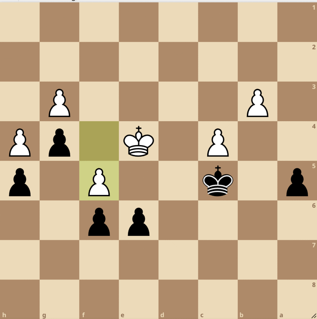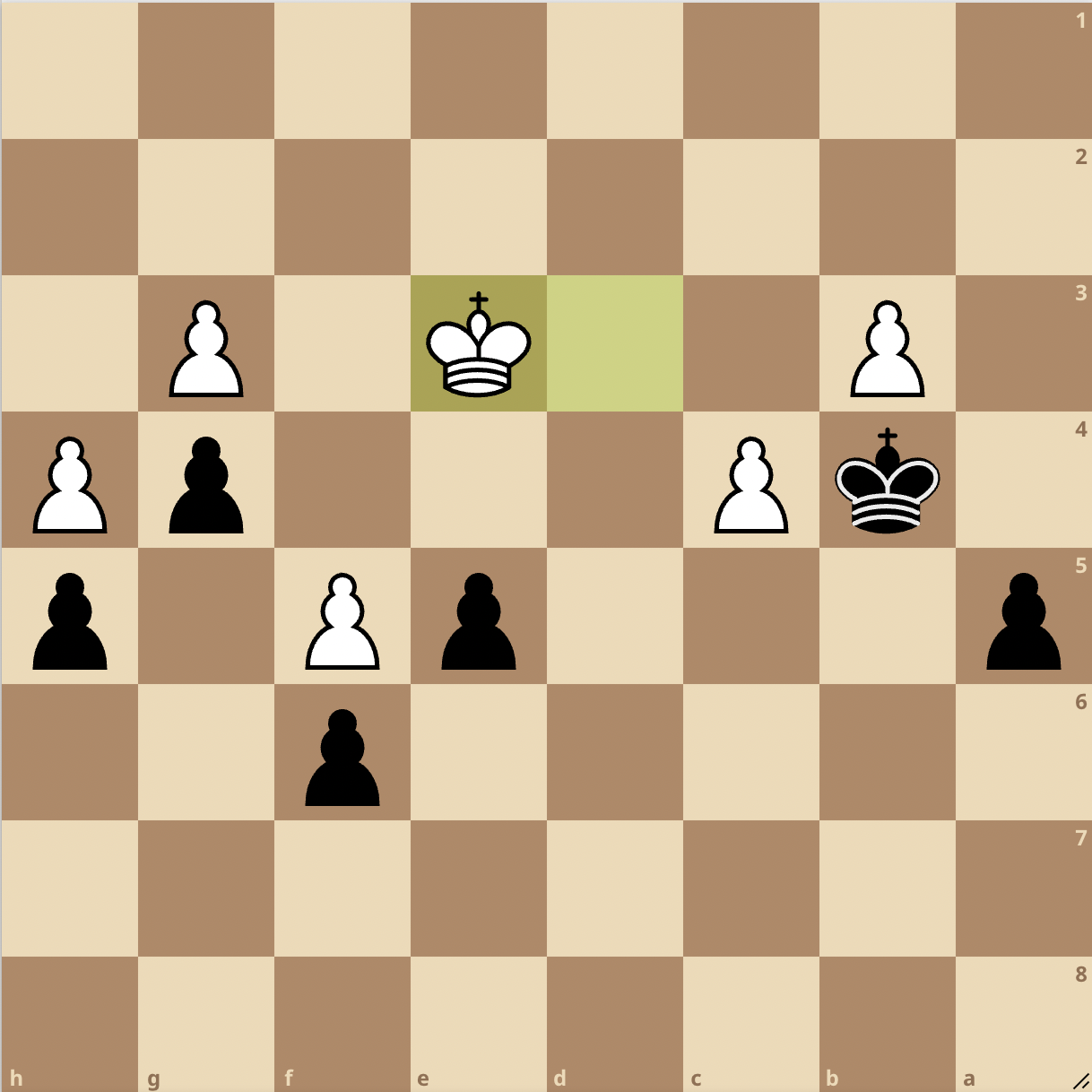 Lode: Remise … Waarom? Omdat ik, in tijdnood, niet zie dat a4 winnend is. Omdat je niet op a4 terugslaat, maar eerst op c4 en daarna de randpion ophaalt en daarna de vrijpion op e5 verzilvert. (red.: Zwart kan niet direct op b3 slaan want dan loopt de pion op c4 door.)