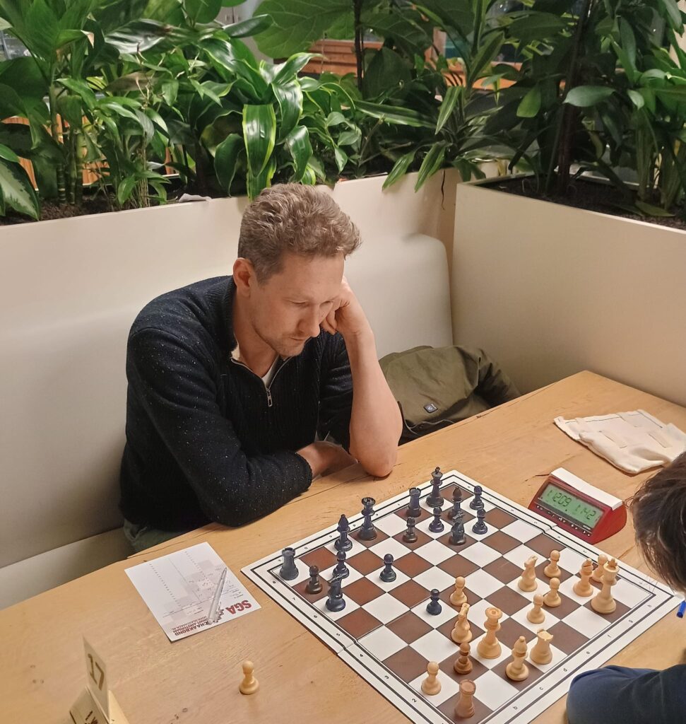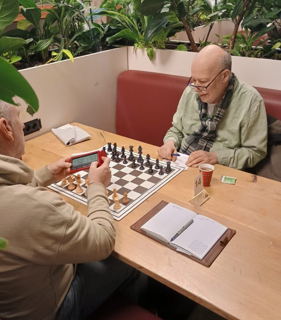 Vadym is zodoende de ongedeelde koploper in groep 4 met een 100% score! Lode merkt eind van de avond op dat Hans een taaie tegenstander is. Hij won vroeg in de partij een pion maar moest daarnaast activiteit van Hans accepteren. Na een flinke strijd wist hij het voordeel over de streep te trekken.