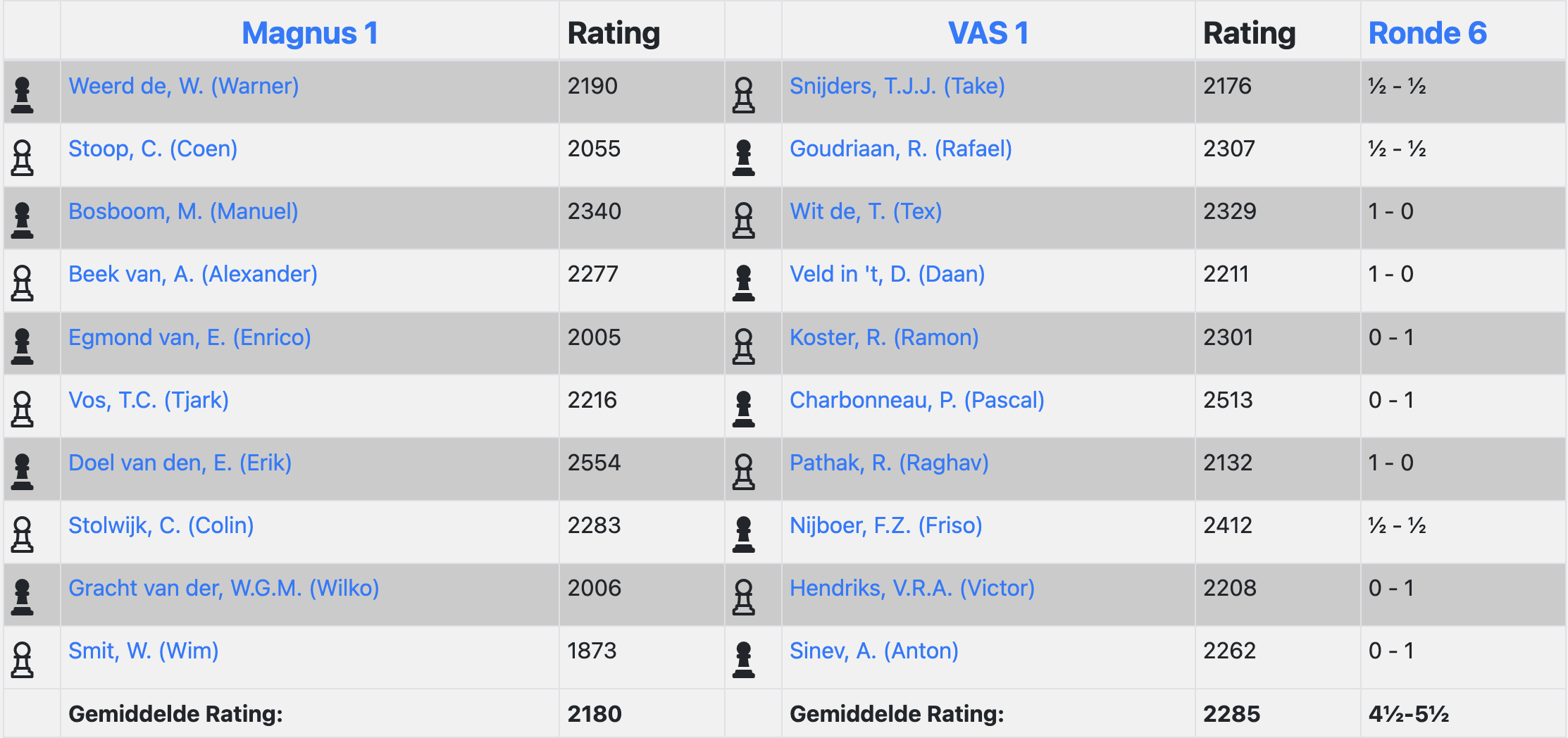 Magnus had a strong team, and I suppose this is somewhat unique in the Dutch League, but there was a cluster of grandmasters on boards 6 to 8, none of them facing each other.