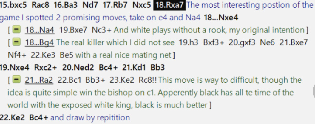 Friso’s was the first to end.  It was a very interesting game, where Friso felt, correctly of course, that he should be better / winning.  Accuracy (and also some very difficult to find, computer like motifs) were required, but it is always frustrating when you feel the game did not get the beautiful conclusion it deserved. Friso’s notes: