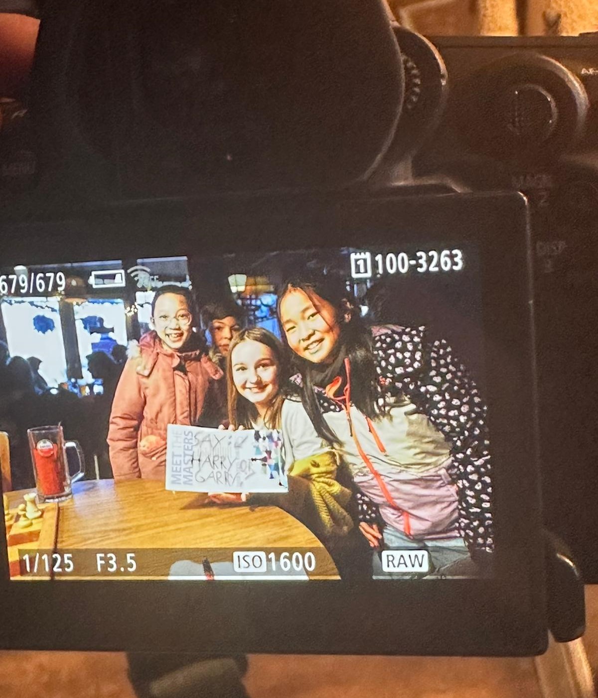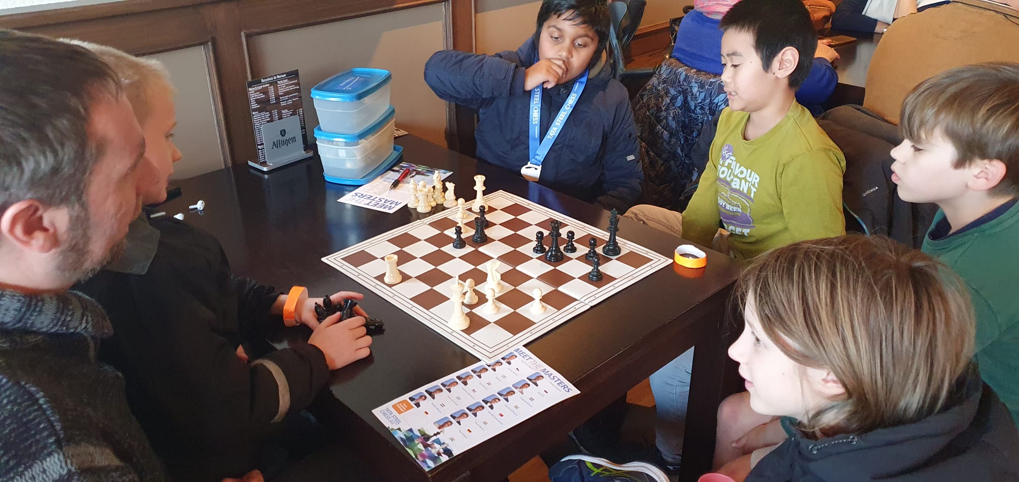 Toen de eerste grootmeesterpartij klaar was, rende er een horde VAS-kinderen naar de uitgang van De Moriaan. Want ze waren op handtekeningenjacht!