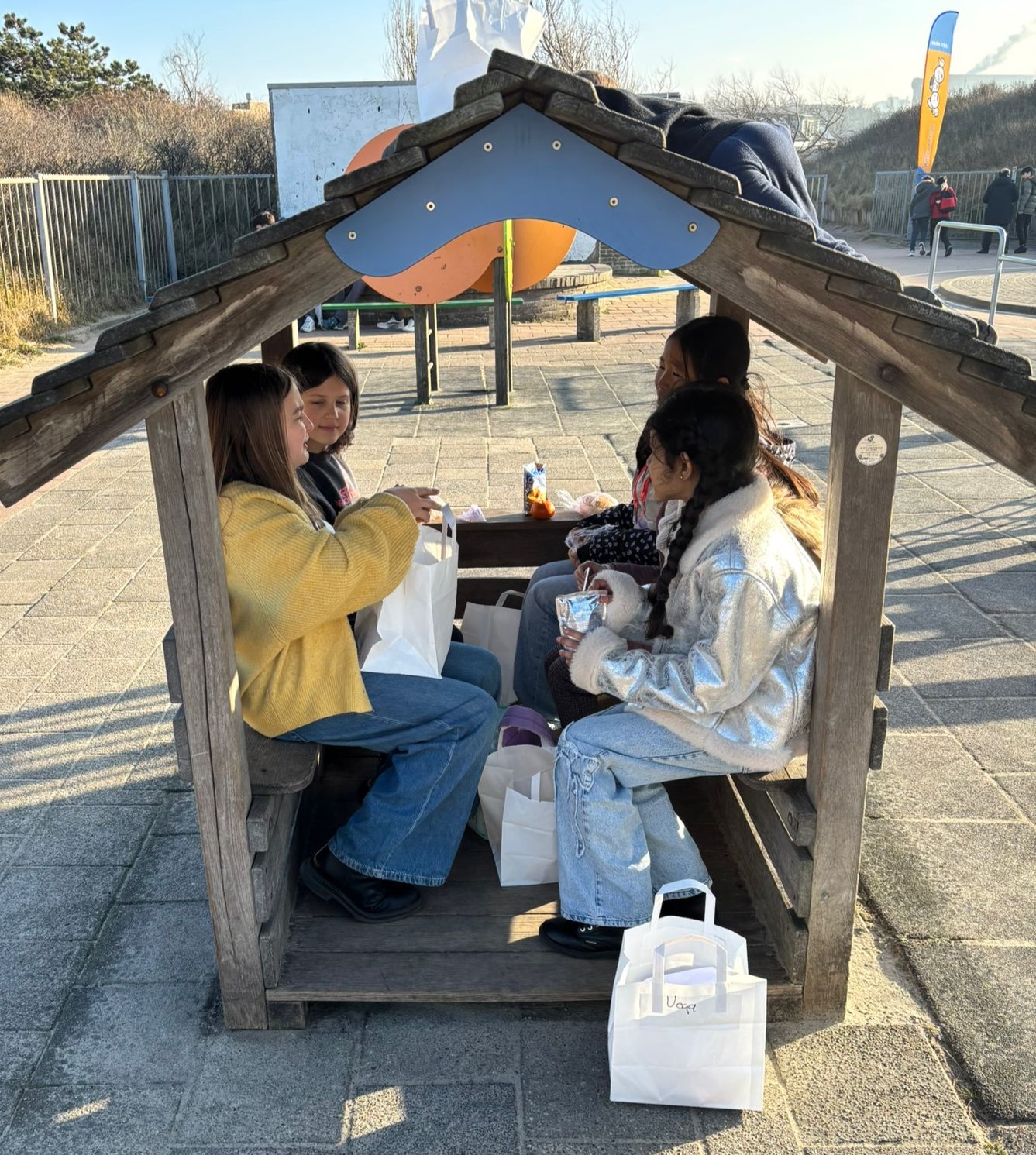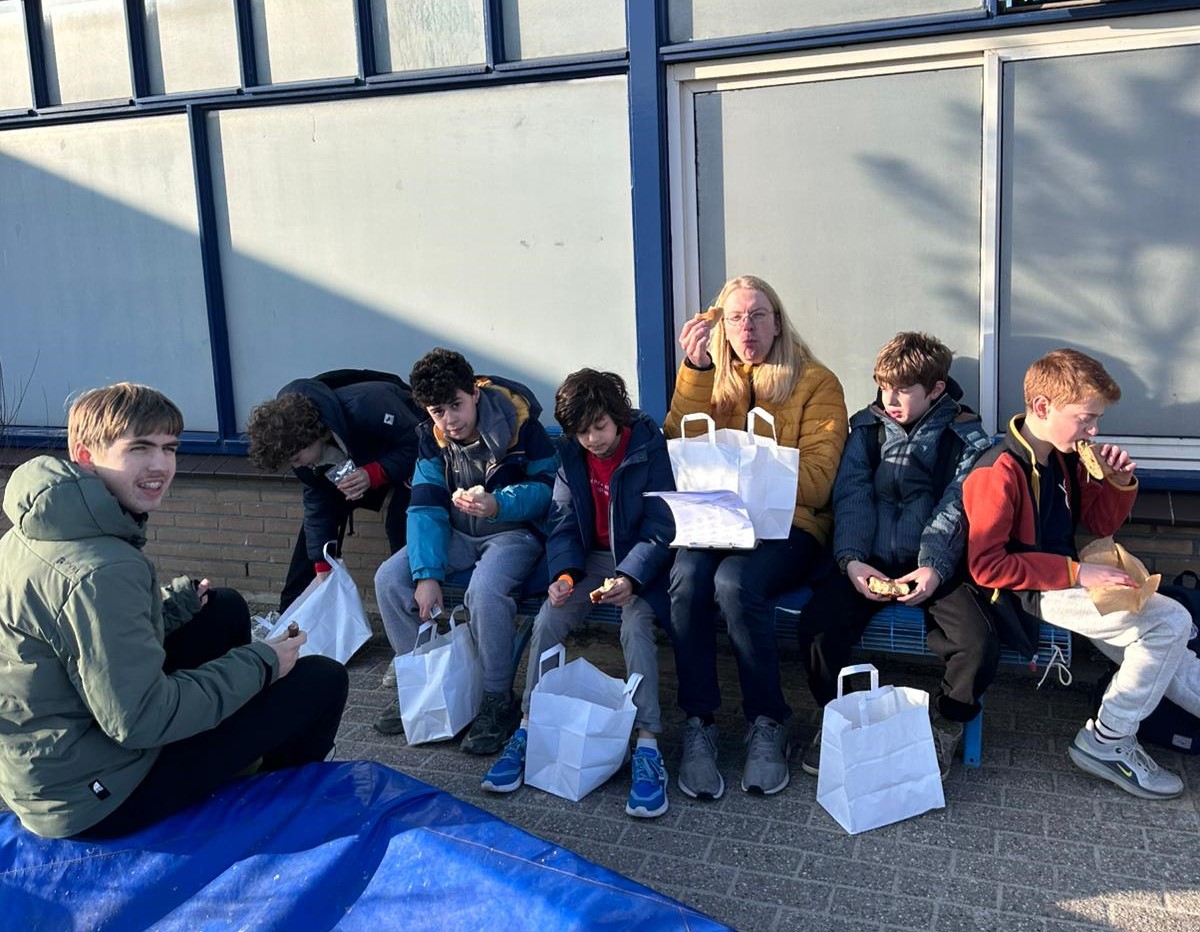 De kinderen hadden de smaak te pakken, ook in letterlijke zin. Het was al snel tijd voor de lunch, die we op het speelplein van de basisschool om de hoek konden eten. Er werd flink gesmikkeld van het lunchpakket.