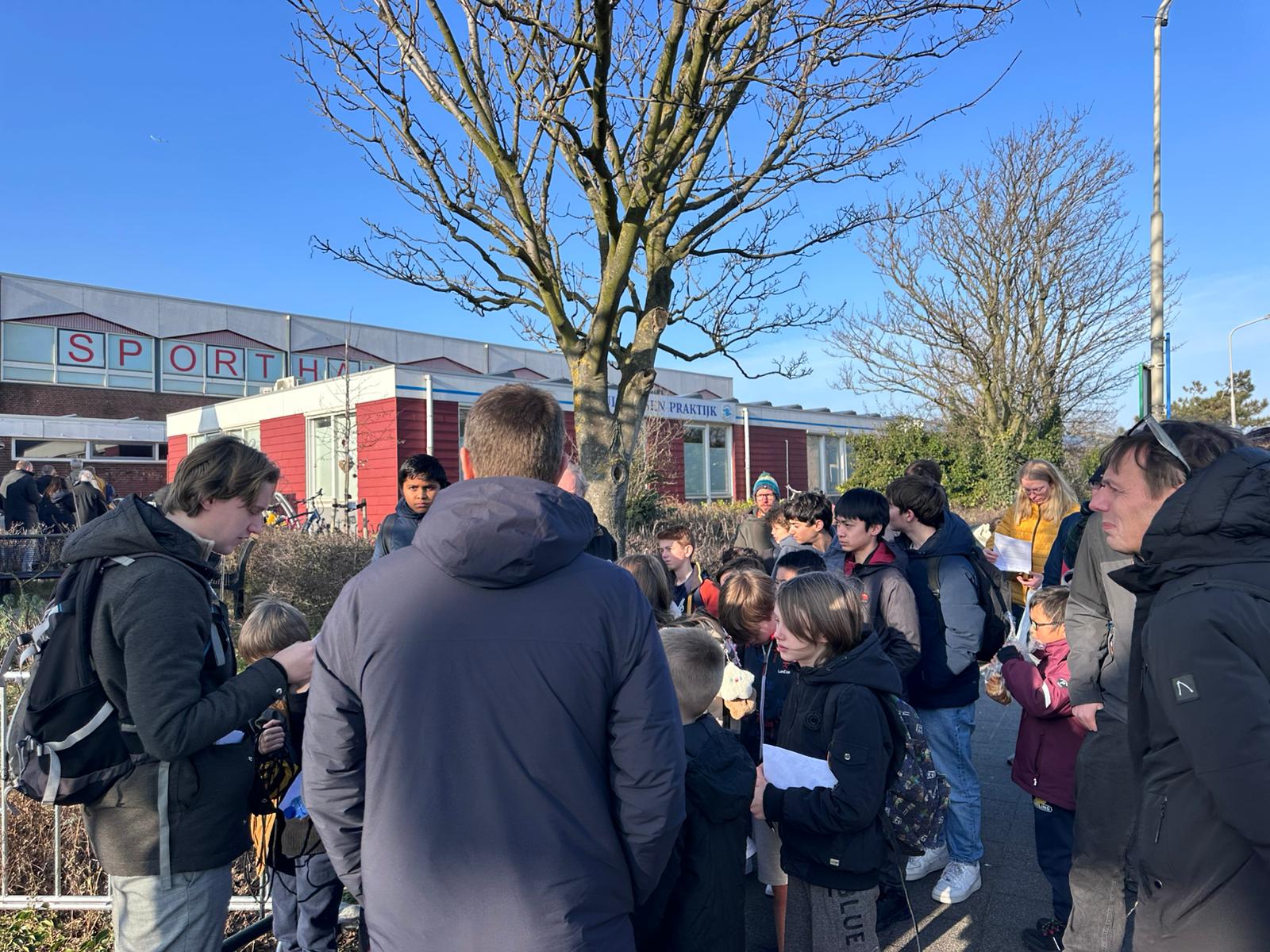 Toen gingen de groep de bus opwachten, vlakbij de ingang van het Vondelpark. Hier troffen we de seniorenleden en nog wat extra jeugdleden die graag mee naar Wijk aan Zee trokken.