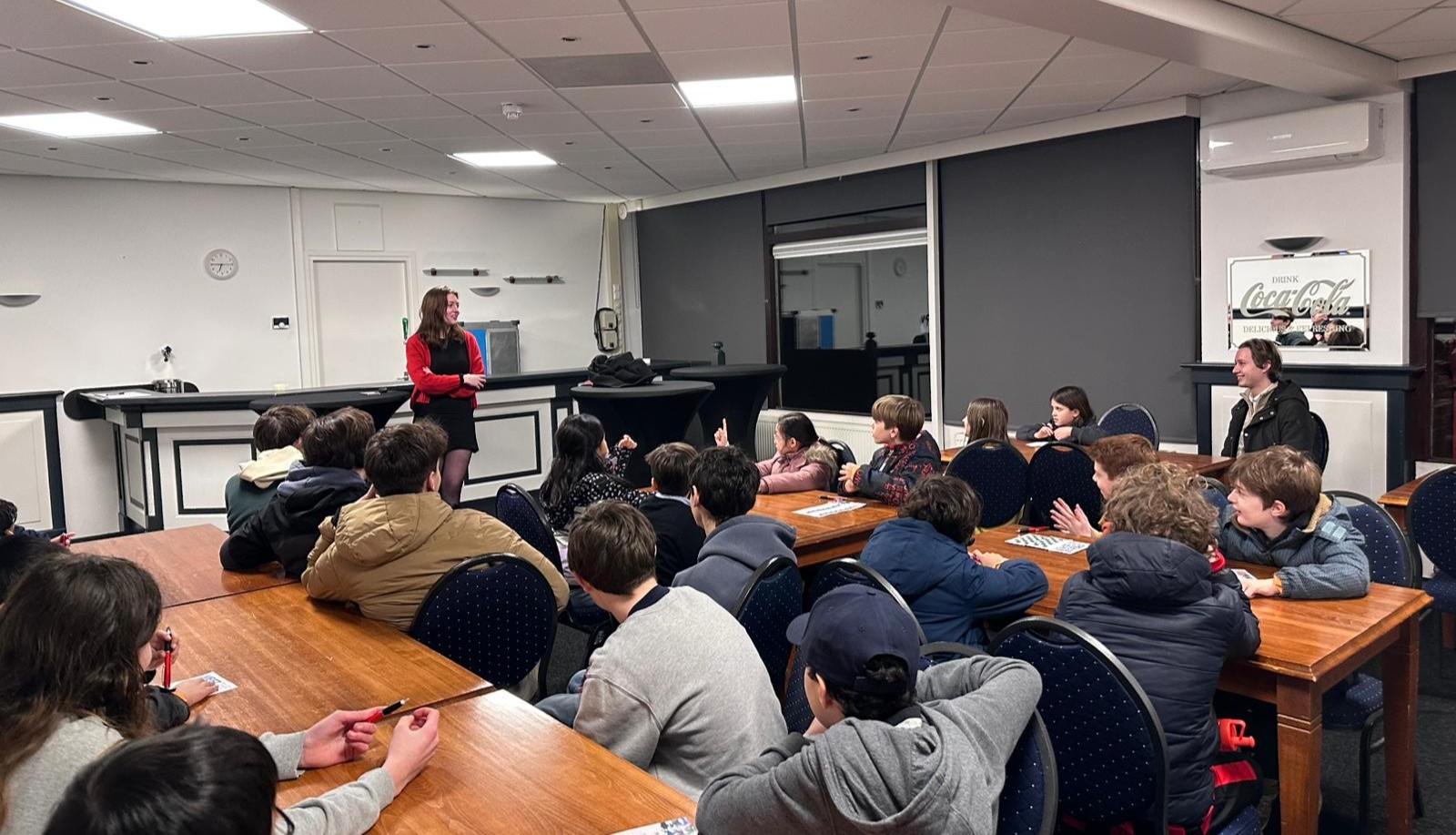En toen een speciale verrassing: we mochten even achter de schermen kijken van het toernooi! Ze keken mee bij de grote streamhub, waar alle partijen de wereld in worden gezonden. Zeker voor de oudere jeugd, die zulke toernooien altijd van een afstand volgen, was het bijzonder om opeens zo dichtbij de actie te komen.