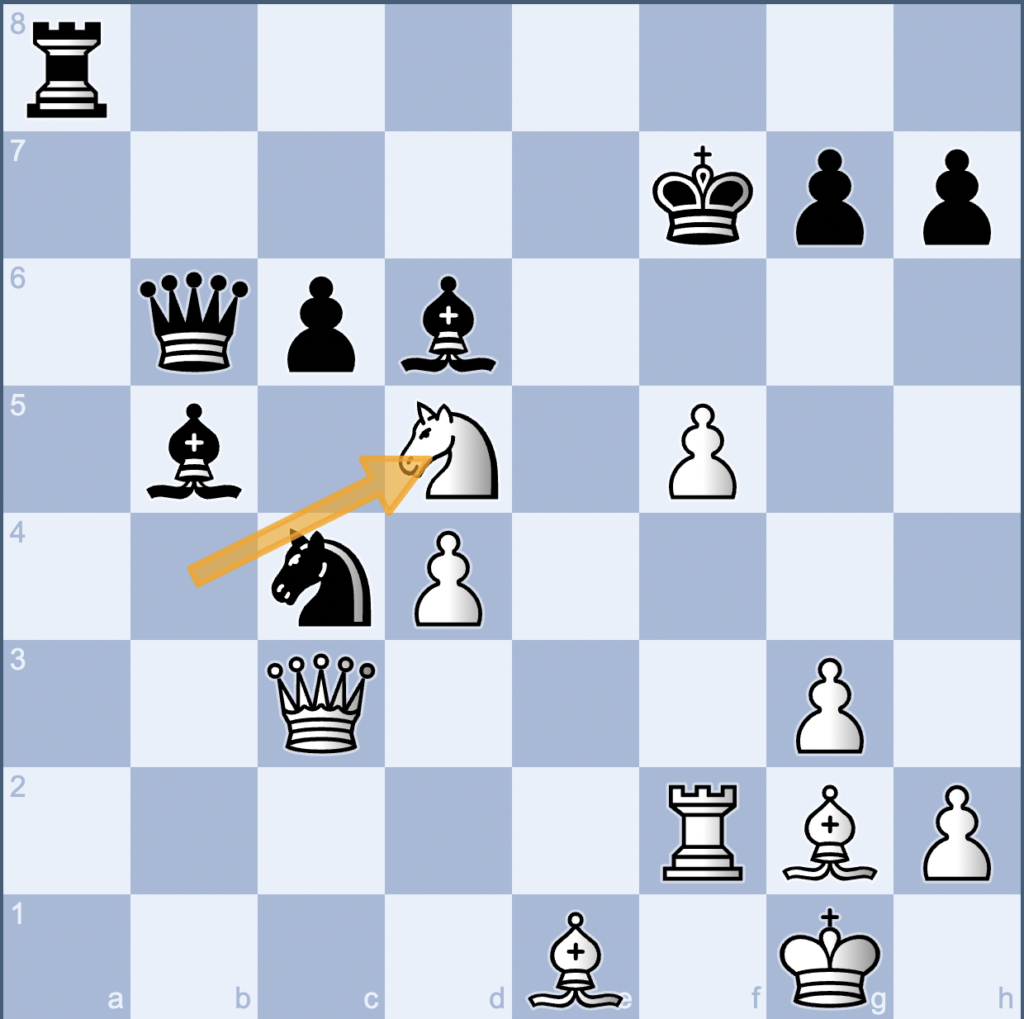 Zwart sloeg onder druk op d4 met Pxd4. Hierna maakte Huub het hardhandig af. Kunt u zien hoe?
