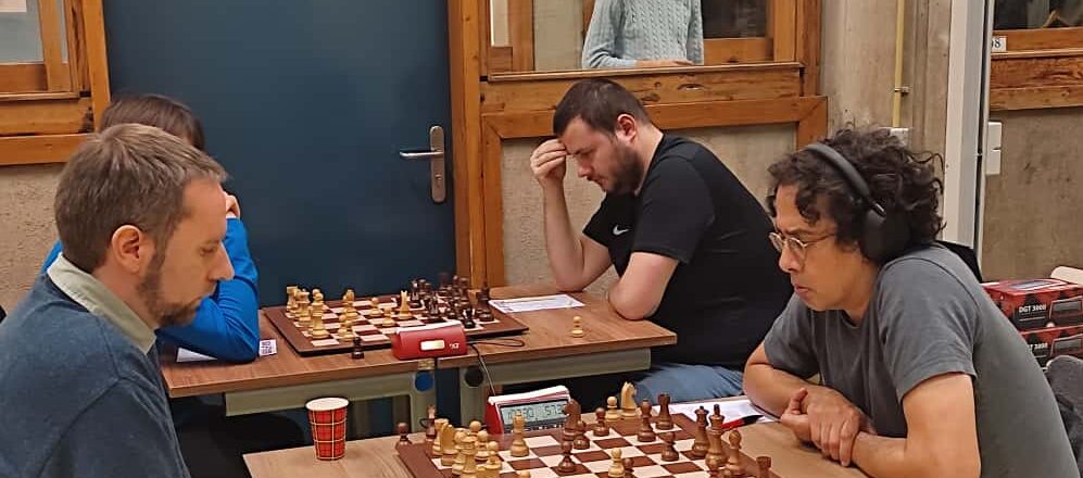 Ook in de bovenstaande stelling werd het pad naar remise gevonden. Een ander topduel dat in remise eindigde was de strijd tussen Ryan en Renzo. Het is goed om Renzo weer achter het bord te zien zitten! Tegen een ontketende Ryan, onze man wordt met de dag beter, werd een principieel ongelijk loper duel uitgevochten. Maar ook zij besloten tot remise. In een stelling waarin wellicht nog wat muziek zat. Oordeelt u zelf?