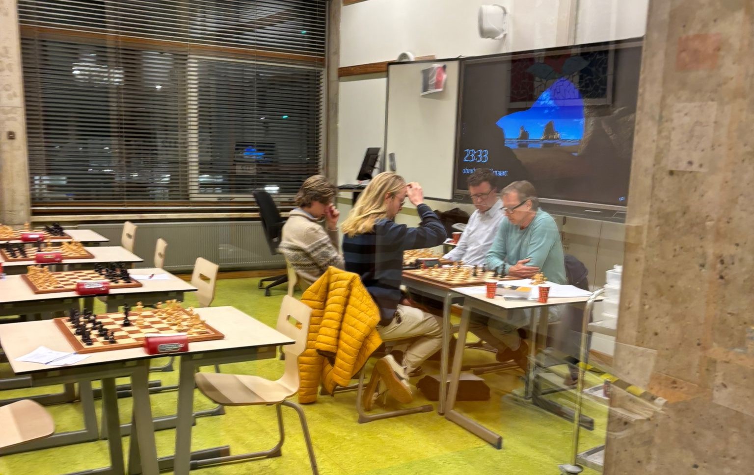 De laatste speeldag van onze competitie werd zaterdag 28 maart. De welbekende inhaalronde. Een drama natuurlijk, want een flink deel van schakend Nederland had die datum al wat anders staan. Dat gold ook voor Ivo en ondergetekende, die een scholentoernooi te organiseren hadden.