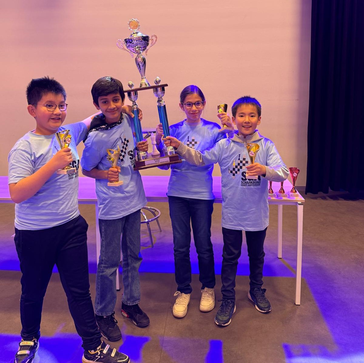 Ze hebben het allemaal uitstekende gedaan! Want: de SGA is trots kampioen geworden! Heel leuk, want de SGA organiseerde dit jaar het Huttontoernooi in eigen huis 9bij Zukertort om precies te zijn). Het thuisvoordeel heeft zich duidelijk uitbetaald.