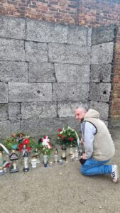 Via Magdeburg en Krakau gaat de reis naar Auschwitz, waar het merendeel van de 36 is vermoord: 18 om precies te zijn. Tien van hen werden direct na aankomst vermoord. Auschwitz bestond uit meerdere kampen, waarbij Auschwitz I het Stammlager was. Het kamp is nog grotendeels onveranderd; hier is weinig verbeelding voor nodig. De stenen barakken staan nog overeind. Opvallend hoe dicht ze op elkaar staan. Bijzonder: je loopt er rond binnen de omheining, op dezelfde plaats waar een aantal van de 36 mogelijk ook heeft rondgelopen, zoals Hijman Frankvoorder, die nog anderhalve maand in Auschwitz heeft geleefd. Bij de herdenkingsplaats naast Block 11 plaats ik weer twee schaakstukken.