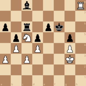 Het is duidelijk dat de zwartspeler volledig is aangekrant en dat alleen wit aanspraak kan maken op de winst. De zwartspeler zal zijn toren van c6 naar c7 spelen en weer terug. Zodra het paard weggaat valt c3, en wanneer de Koning c3 dekt speelt zwart e5+ en valt de g-pion waarmee de loper zich bevrijd. De beste route naar winst begint met het spelen van de Toren naar g8. Daarna volgt de tocht naar c3 met de Koning waarbij je met wit moet accepteren dat de loper zich zal bevrijden. De resterende positie levert dan een gewonnen stelling op.