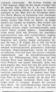 Het was in die dagen gebruikelijk dat een toernooiwinnaar van dit kaliber tot erelid van de club werd benoemd. Maar bij Burn gebeurde dat niet. Misschien vergat men het. Misschien had het iets met Haarlem te maken. Misschien ook met het portret.